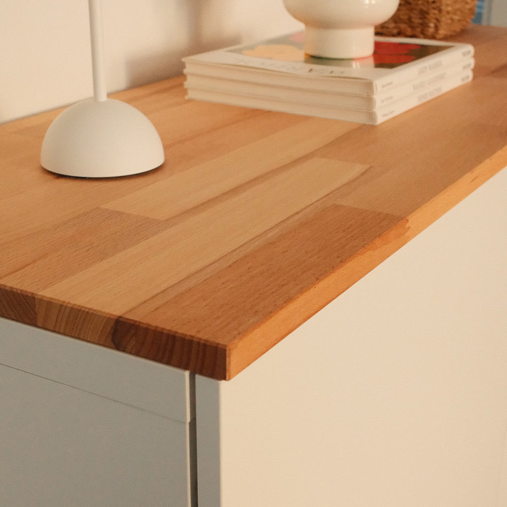 Unsere Massivholzplatte aus Buchenholz erhältst du in geölter oder naturbelassener Ausführung. Durch die natürliche Maserung sieht jede Deckplatte anders aus. Sprich mit nur einem Klick erwirbst du ein absolutes Unikat, das das Serienprodukt von IKEA zu etwas Einmaligen macht.