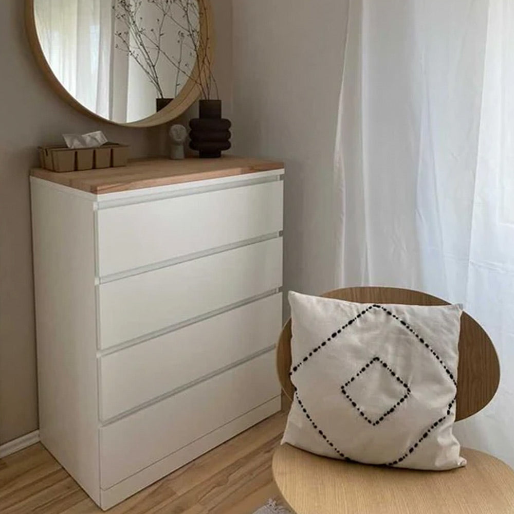 Hol dir mit unserer Malm Holzplatte den angesagten Scandi-Style in deine eigenen 4 Wände. So einfach wird aus der beliebten IKEA Kommode mit 6 Schubladen ein richtiges Unikat. Ein neuer Look und eine enorme Aufwertung deines Lieblingsmöbelstücks – was will man mehr.